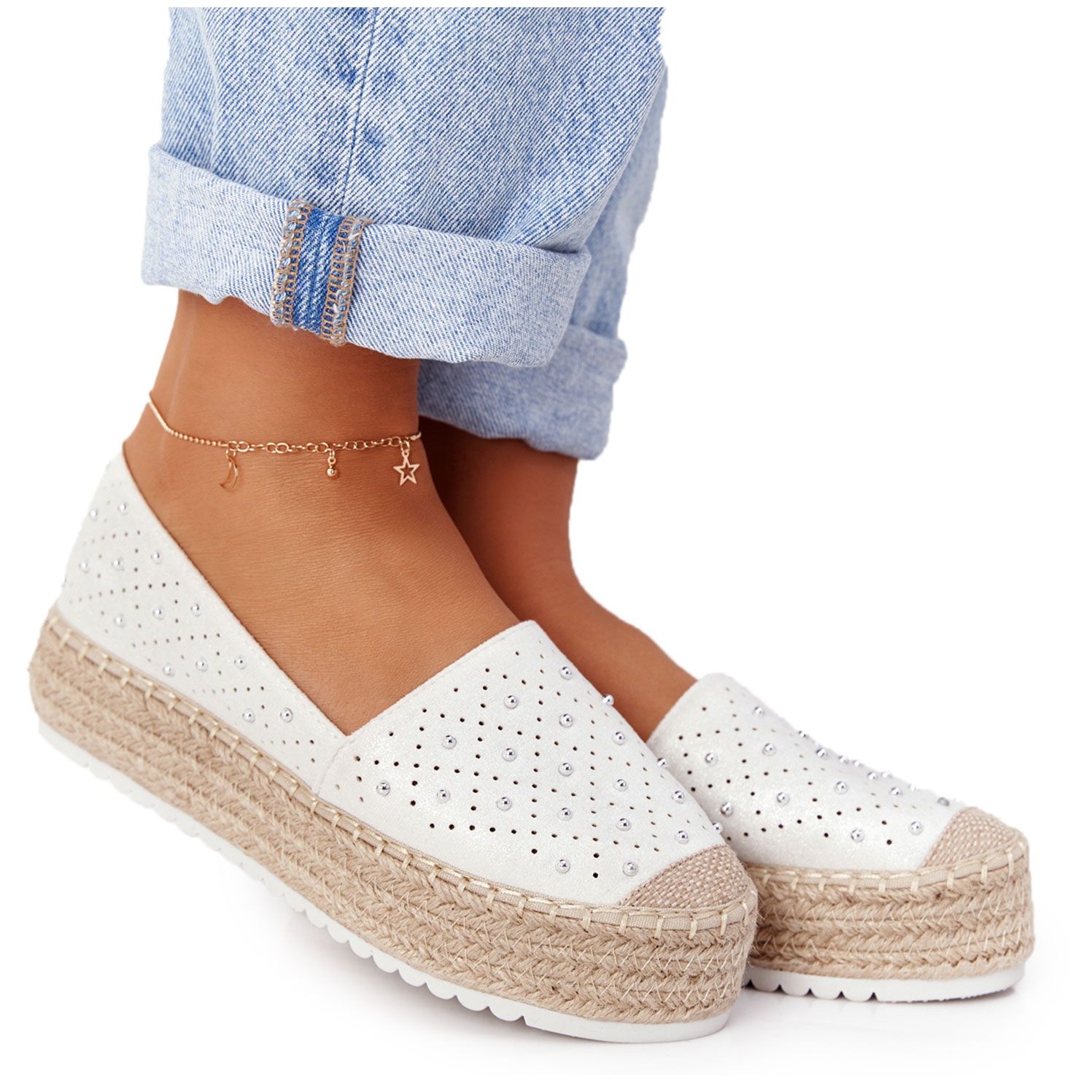 Připravte se na letní dny jedinečným způsobem s espadrilkami na slaměné platformě od značky S.Barski! Tyto krásné bílé espadrilky s jemnými stříbrnými akcenty jsou perfektní volbou pro každou ženu, která chce spojit módu s pohodlím. Díky modernímu designu jsou dokonale v souladu s trendy a prolamované detaily jim dodávají jedinečný charakter.