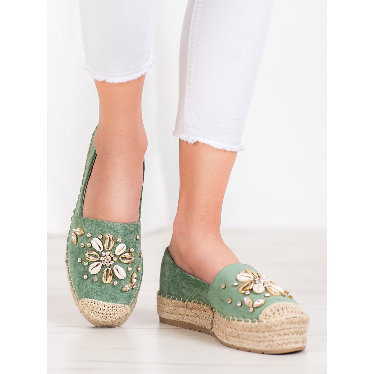 Představujeme espadrilky Seastar v nádherné zelené barvě, které jistě upoutají pozornost každého milovníka jedinečného designu. Tyto stylové boty jsou perfektní volbou pro každodenní nošení a skvěle doplní letní styly. Zdobené jemnými kamínky poskytují nejen jedinečný vzhled, ale také pohodlí při nošení.