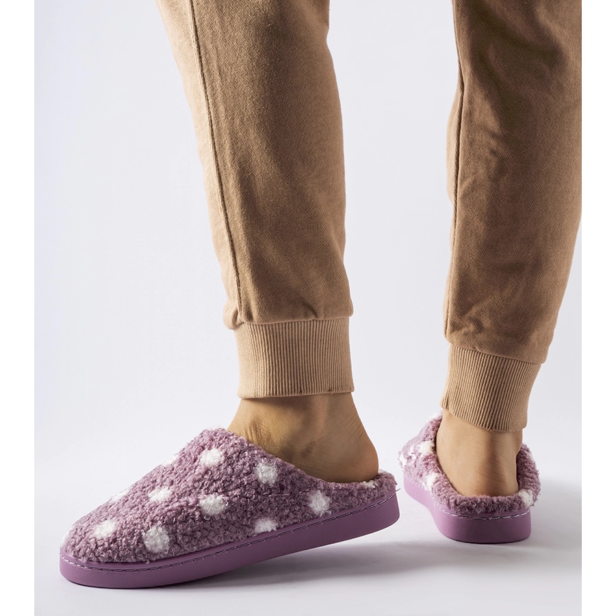 Inna marka Fialové teplé pantofle s bílými puntíky fialový