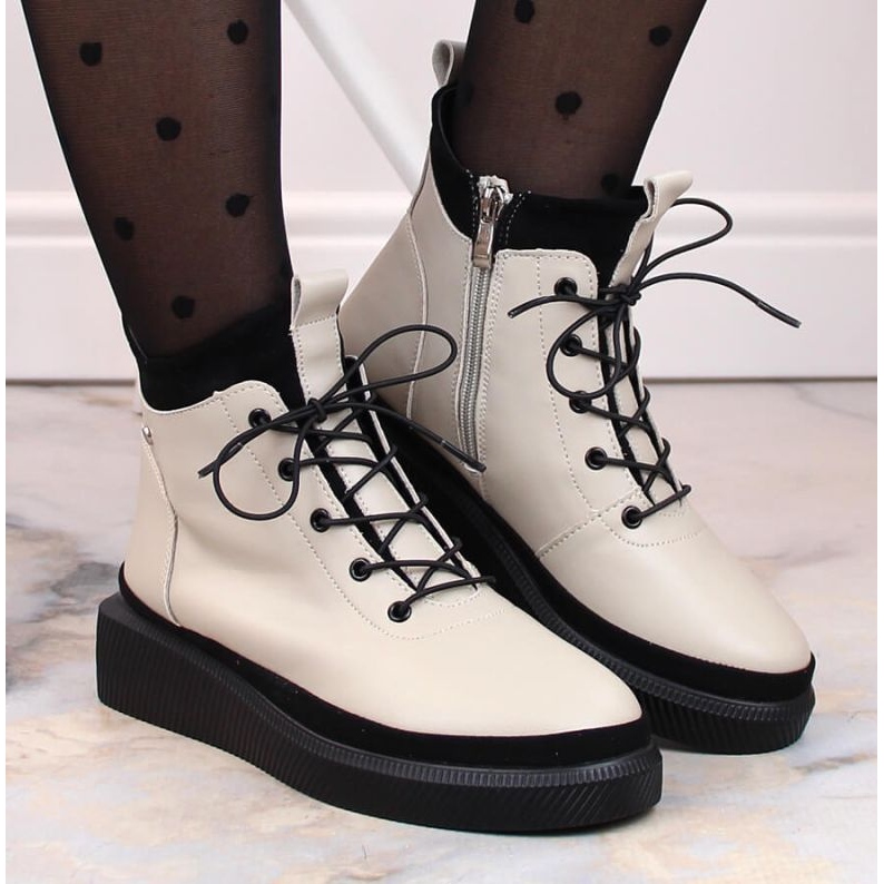 Filippo Filippo W PAW482 béžové zateplené kožené boty na platformě bílý