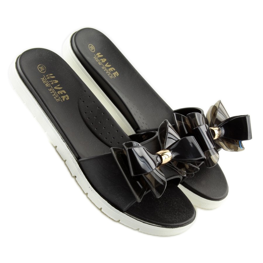 Ujistěte se, že vaše léto je stylové a pohodlné. Vyberte si černé boty meliski s mašlí KM118 Black a cítíte se lehce na každém kroku!