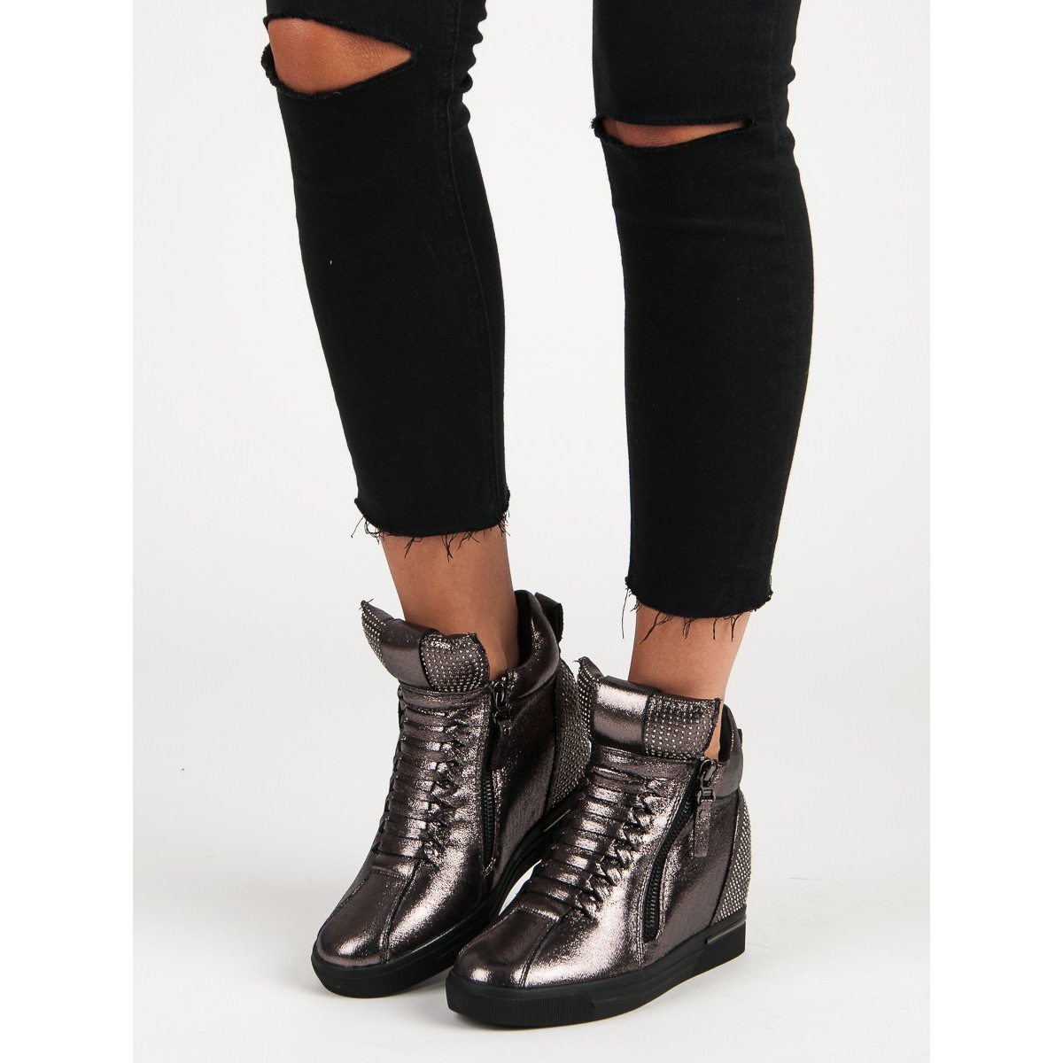Tenisky v lesklé stříbrno-grafitové barvě upoutají pozornost a svým jedinečným stylem se skvěle hodí jak na každodenní nošení, tak na elegantnější příležitosti. Díky zabudovanému 9 cm vysokému klínu získáte nejen atraktivní vzhled, ale i sebevědomí v každé situaci.