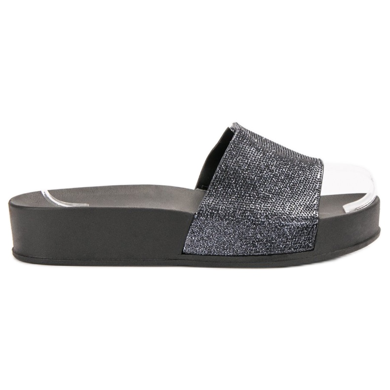 Pohodlná, mírně zvýšená podrážka s výškou 3,5 cm zajišťuje stabilitu a pohodlí na každém kroku a gumový materiál dělá žabky lehkými a snadno se udržují v čistotě. Stylový detail v podobě flitrů umístěných na širokém pásku jim dodává jedinečné kouzlo, které je odlišuje od ostatních modelů.