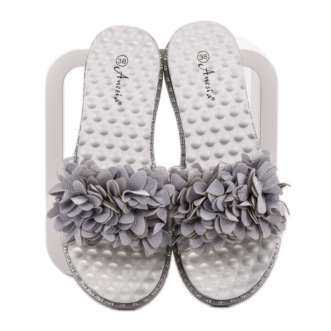 Anesia Paris Anesia Paris Gumové pantofle s květinami šedá