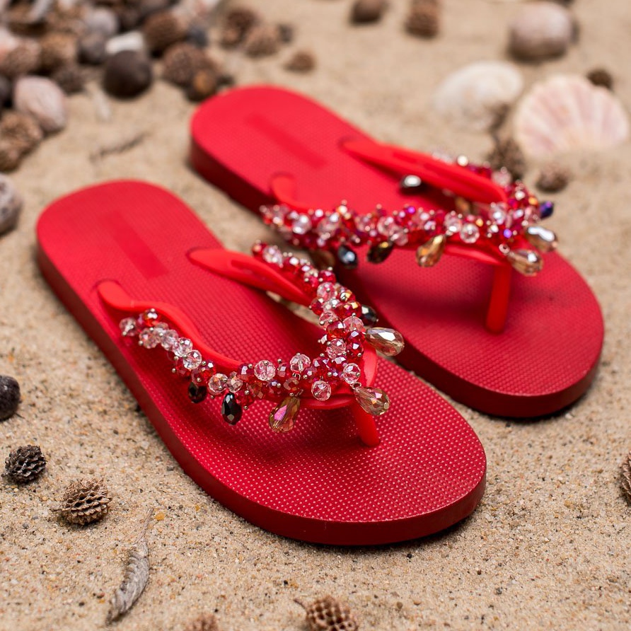 Objevte mimořádný styl a pohodlí s červenými gumovými žabkami SHELOVET s ozdobami! Tyto jedinečné žabky jsou perfektní volbou pro nadcházející letní dny a potěší každou ženu. Díky bohatému zdobení včetně jiskřivých krystalů jsou perfektním doplňkem každého letního stylingu.
