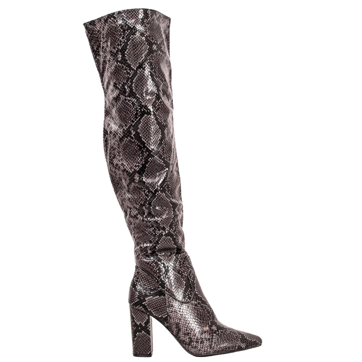 Kozačky nad kolena Snake Print od Seastar jsou perfektní volbou pro ženy, které chtějí spojit eleganci s trochou extravagance. Tyto smyslné boty vyrobené z ekologické kůže přitahují pozornost nejen originálním hadím vzorem, ale také zaručují pohodlí při nošení díky 9centimetrovému blokovému podpatku.