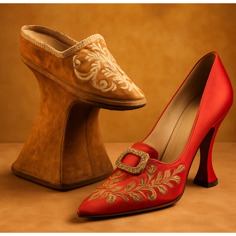 V 17. století zavedl král Ludvík XIV. módu červených podpatků pro aristokracii. Sam měřil pouhých pět stop pět a měl vysoké podpatky, aby vypadal vyšší. Muži i ženy stejně často nosili ozdobné boty na vysokém podpatku, často bohatě zdobené výšivkami a přezkami. Červená barva byla vyhrazena výhradně pro krále a jeho nejbližší okolí.