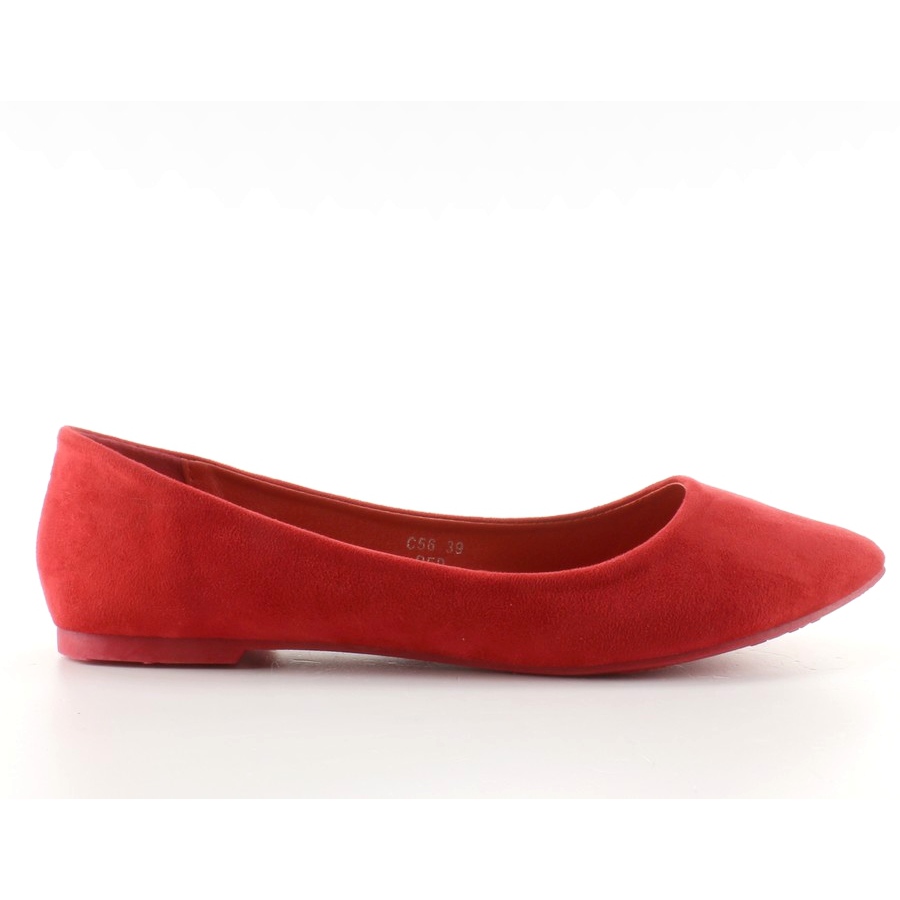 Hladké C56 Červené balerínky - červená, jemný hrot