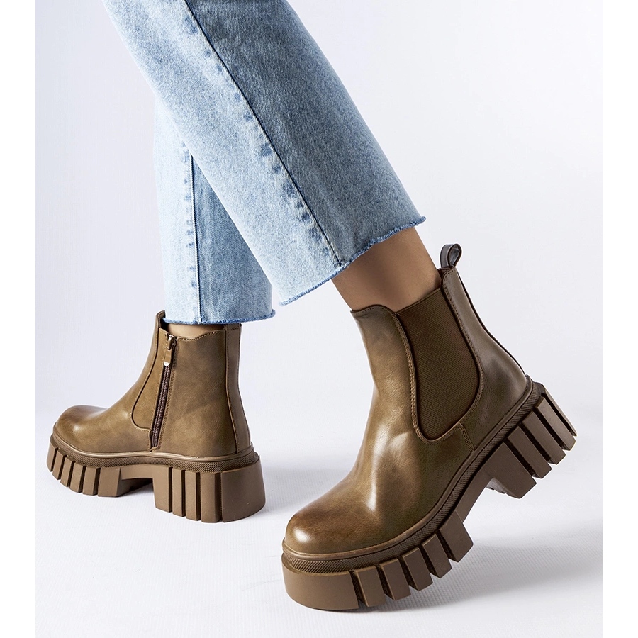 Boots Brown Chelsea na platformě Giusy - Model D7986 (Khaki)