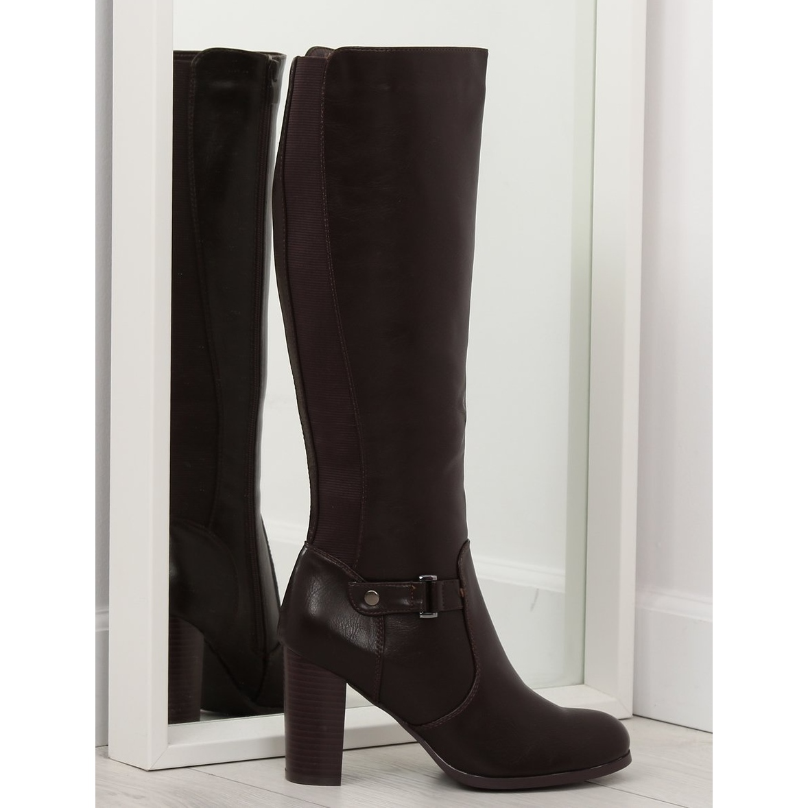 Inna marka Hnědé boty na podpatku QT02P Brown hnědý