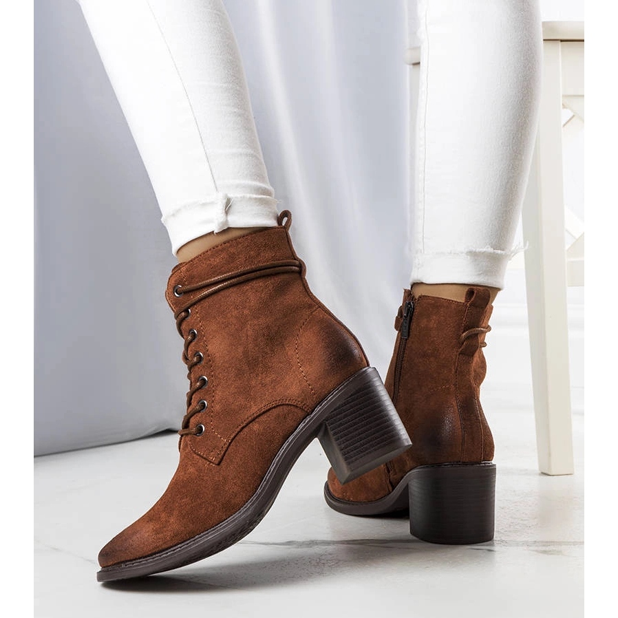 Poznejte hnědé kotníkové boty - perfektní volba pro ženy, které si cení stylu a pohodlí! Tyto kotníkové boty na podpatku se vyznačují elegantní hranatou špičkou, která jim dodává jedinečný charakter. Vysoký svršek zapínaný na zip na boku a zapínání na tkaničky vpředu zaručují nejen dokonalé padnutí, ale také decentně podtrhují ženské tvary.