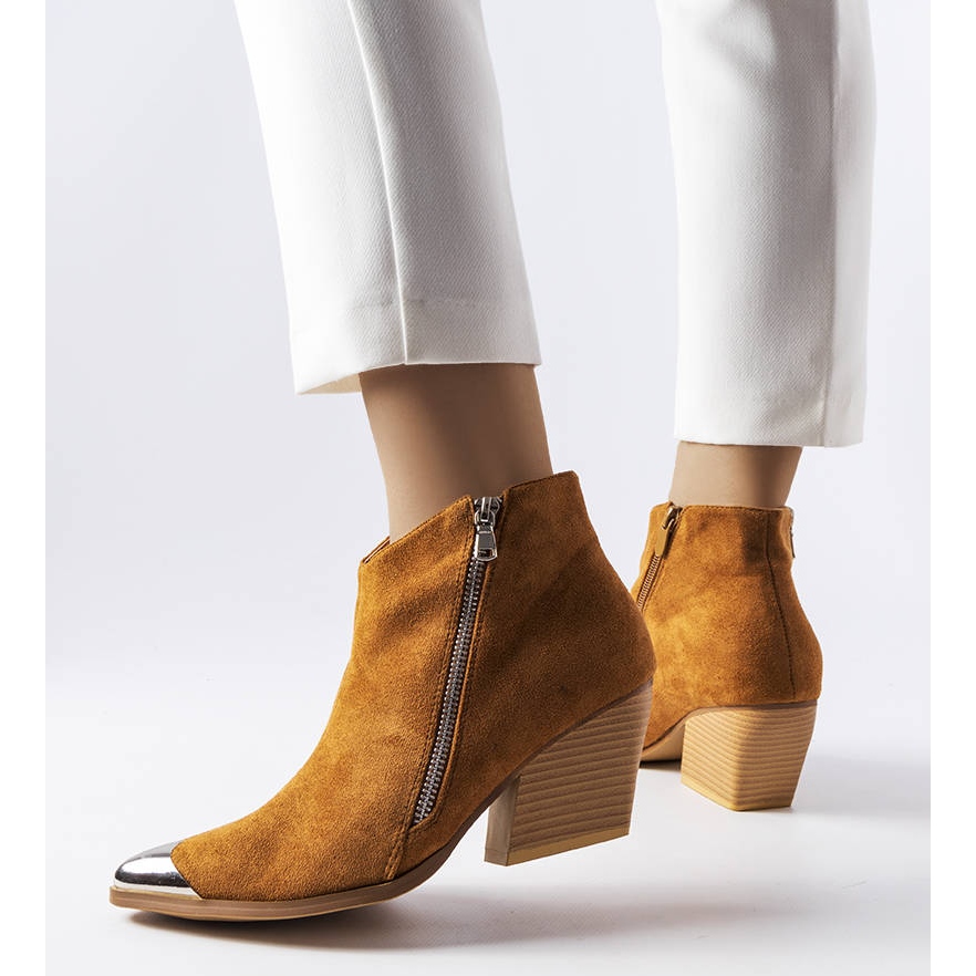 Hnědé kovbojské boty vyrobené ze semišové ekokůže jsou nezateplené, což z nich dělá ideální volbu pro teplejší podzimní a zimní dny. Jejich podšívka a stélka z obuvnické tkaniny zajišťují pohodlí na každém kroku. Kotníkové boty skvěle padnou k volným, ženským boho stylům, perfektně ladícím šatům nebo kalhotám.