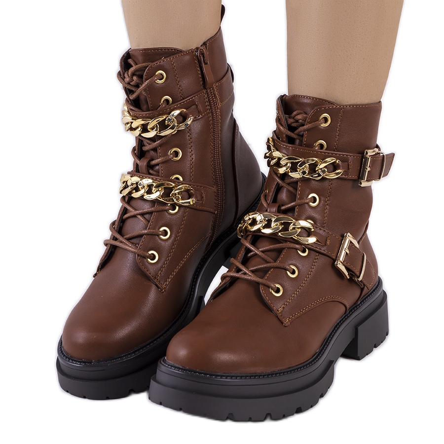 Představujeme hnědé trapery s řetězy, model Corinna - perfektní volba pro chladnější dny. Tyto stylové kozačky jsou vyrobeny z vysoce kvalitní ekologické kůže, která zajišťuje komfort nošení a dlouhou životnost. Díky silné podrážce s chráničem si užijete vynikající přilnavost a stabilitu na různých površích.