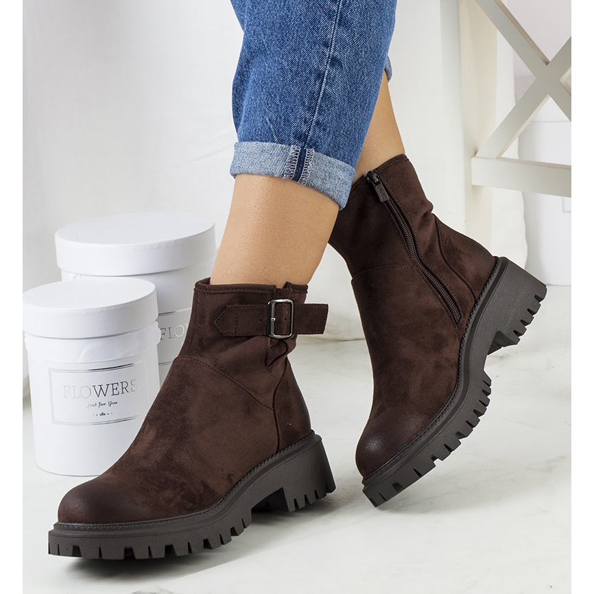 Aleandra Brown Boots - musí mít tuto sezónu. Stylové, univerzální a pohodlné - ideální pro chladnější dny. Vysoká, 4 cm platforma a gumová podrážka účinně izolují od země a izolace poskytne příjemné teplo. Horní vyrobená z vysoce kvalitní semišové ekologické kůže se stará o pohodlí a přidává elegantní matný povrch.