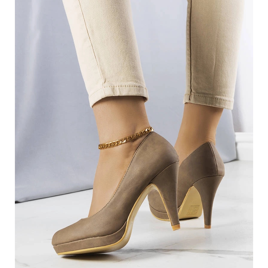 Inna marka Hnědé lodičky Emily na vysokém podpatku béžový