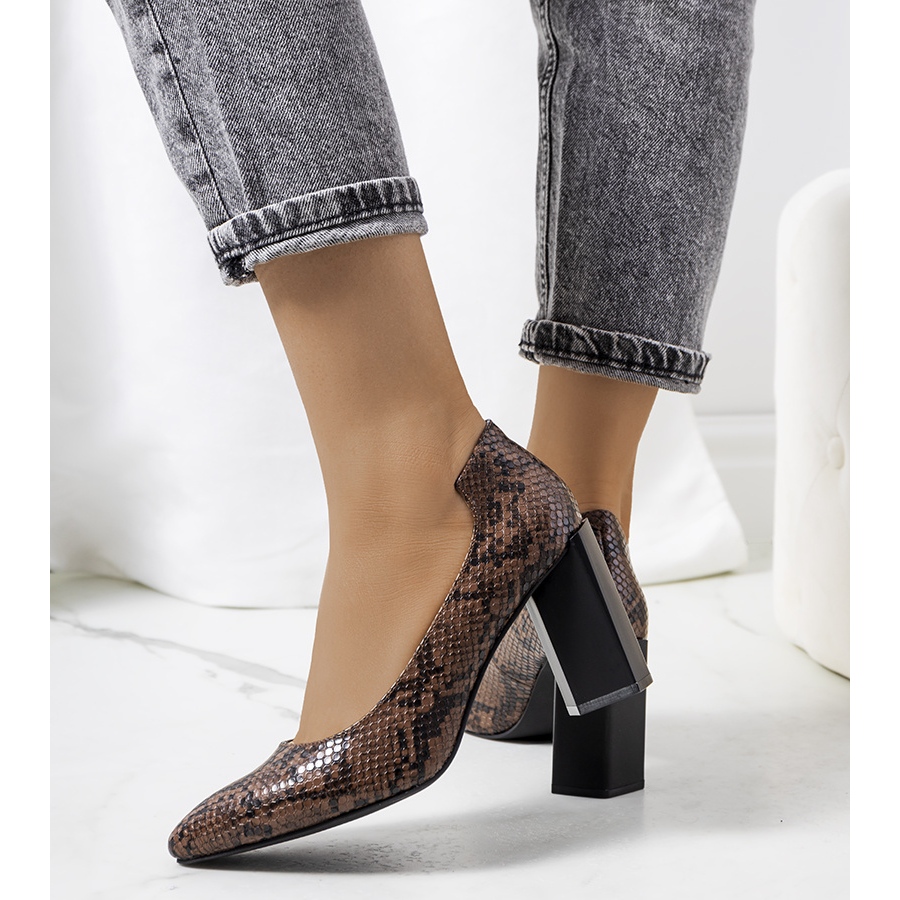 Hnědé lodičky Ajla na vysokém podpatku jsou perfektní volbou pro ženy, které chtějí spojit eleganci s výjimečným pohodlím. Model Ajla vyniká originálně tvarovaným podpatkem, který v kombinaci s módním hadím motivem dodává botám jedinečný charakter.