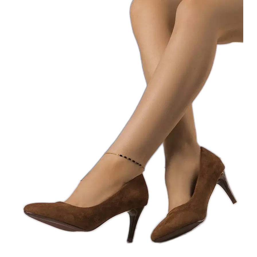 Stylové a elegantní lodičky Amille na jehle v hnědé barvě budou perfektním doplňkem šatníku každé ženy. Model PA1 označený číslem YES-2888-2 se vyznačuje klasickým designem a vysokou kvalitou zpracování. Vyrobeny z ekologické semišové kůže zajišťují pohodlí při nošení a mandlová špička dodává jemnost.