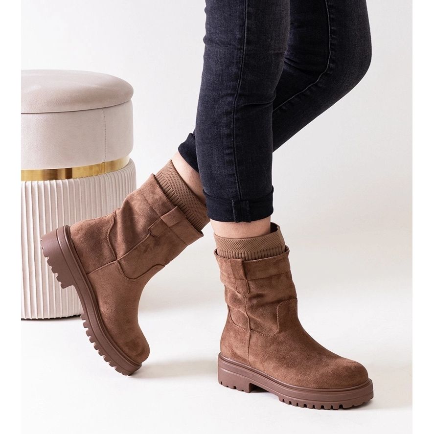 Inna marka Hnědé nazouvací kotníkové boty s ponožkou Ralia hnědý
