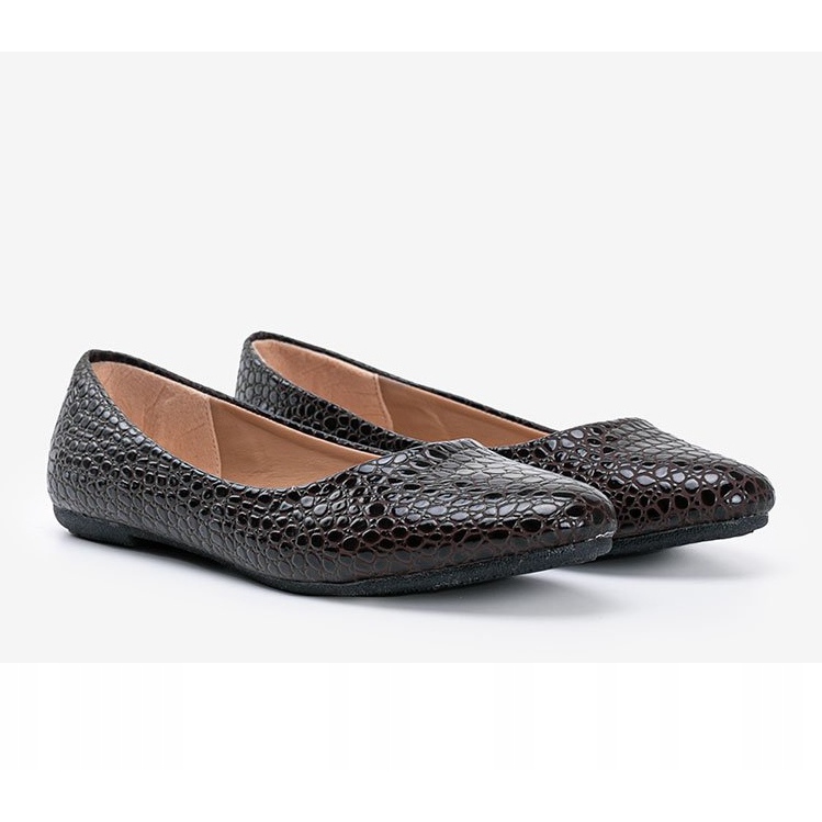 Inna marka Hnědé patentované balerínky se vzorem krokodýlí kůže Mozzare hnědý