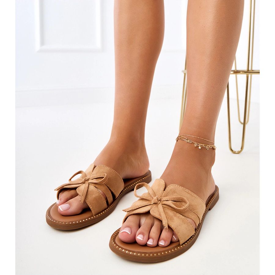 Hnědé flip -flops s lukem jsou univerzální model, který se perfektně děje s neformálními i elegantnějšími stylizacemi. Bez ohledu na příležitost tyto žabky doplní vaše oblečení, takže vždy budete vypadat stylově.