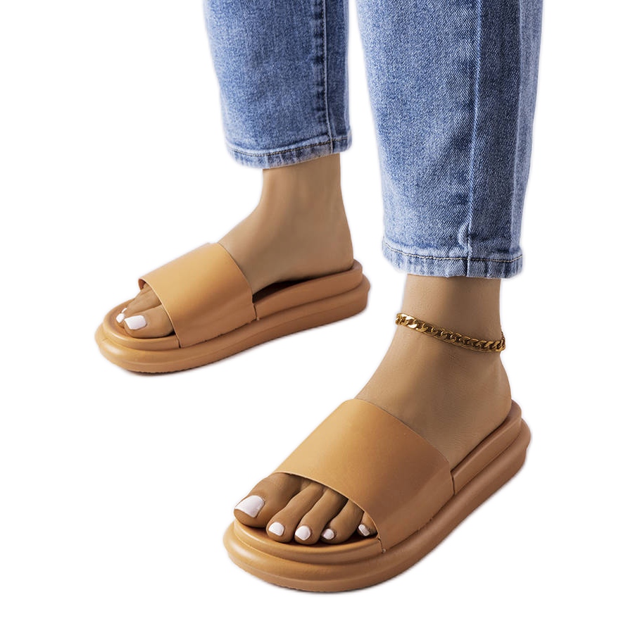 Jsou vyrobeny z vysoce kvalitní gumy, zajišťují trvanlivost a odolnost vůči různým podmínkám a jejich hnědá barva se skvěle hodí k letním stylům. Hnědá podrážka ze stejného materiálu navíc zaručuje estetickou konzistenci a praktičnost. Stélka z ekokůže zajistí, že každý krok bude potěšením a že celodenní nošení obuvi není výzvou.