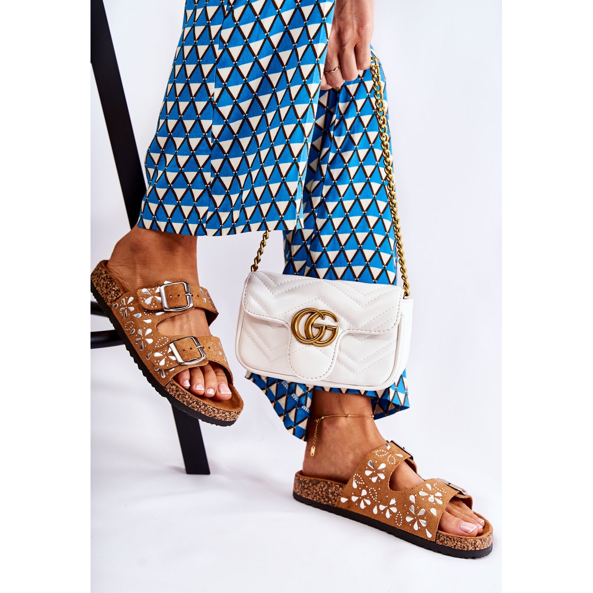 Díky nazouvacímu zapínání se žabky snadno nazouvají i svlékají, takže vám výrazně usnadní každodenní rutinu. Otevřená zakulacená špička dodává lehkost a hnědá barva dělá žabky ladem k mnoha různým sadám oblečení, od ležérních až po elegantnější.
