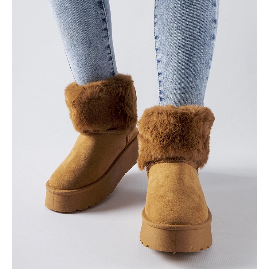 - Módní řez: Camel Ecological Suede with Fur a luk způsobuje, že boty dokonale doplňují zimní stylizace - od příležitostných po ženskou.