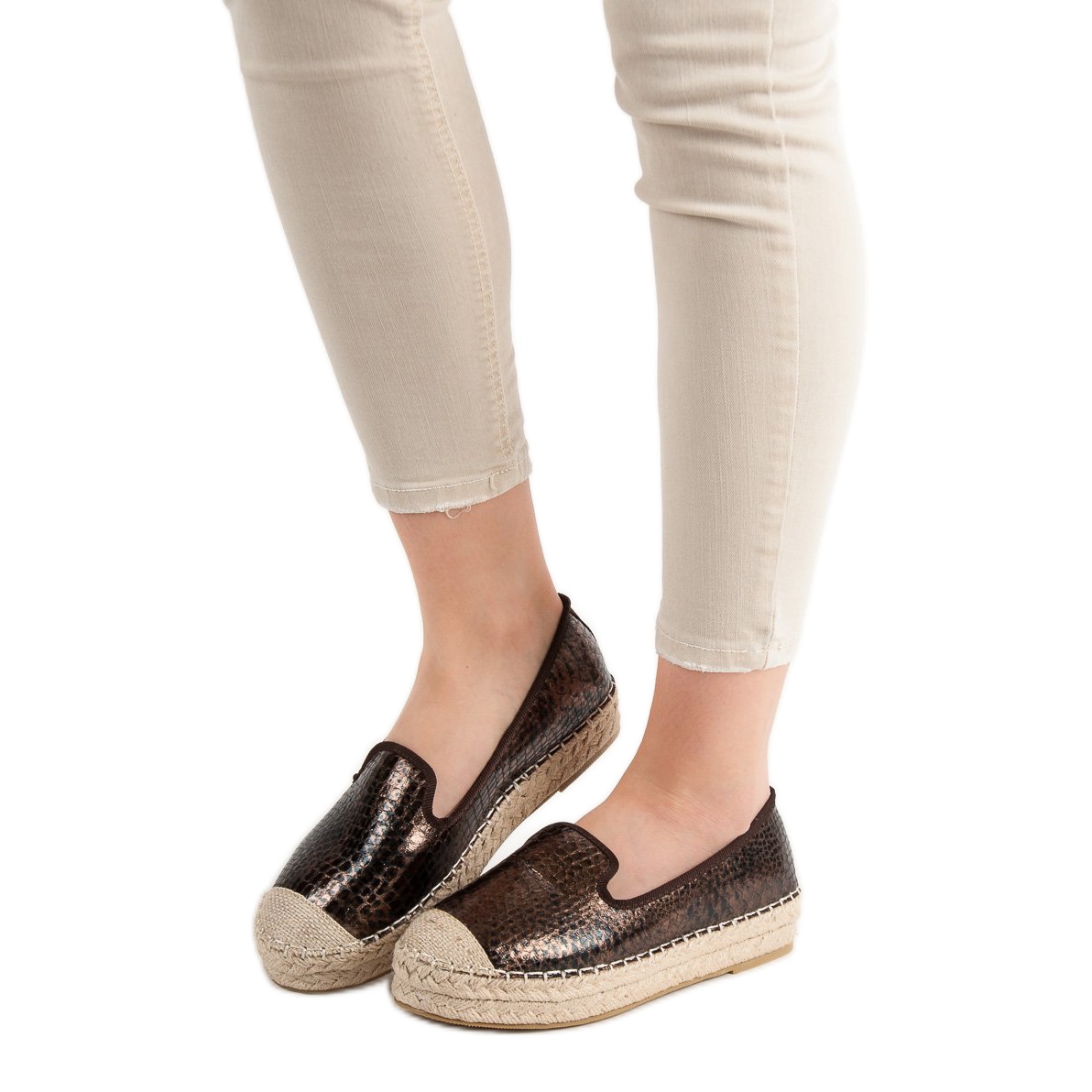 Hnědé pánské VICES jsou perfektní volbou pro ženy, které hledají módní a pohodlné boty na jaro a léto. Tyto jedinečné espadrilky se vyznačují originálním hadím potiskem, který jim dodává charakter a dělá z nich perfektní doplněk k ležérním stylům.