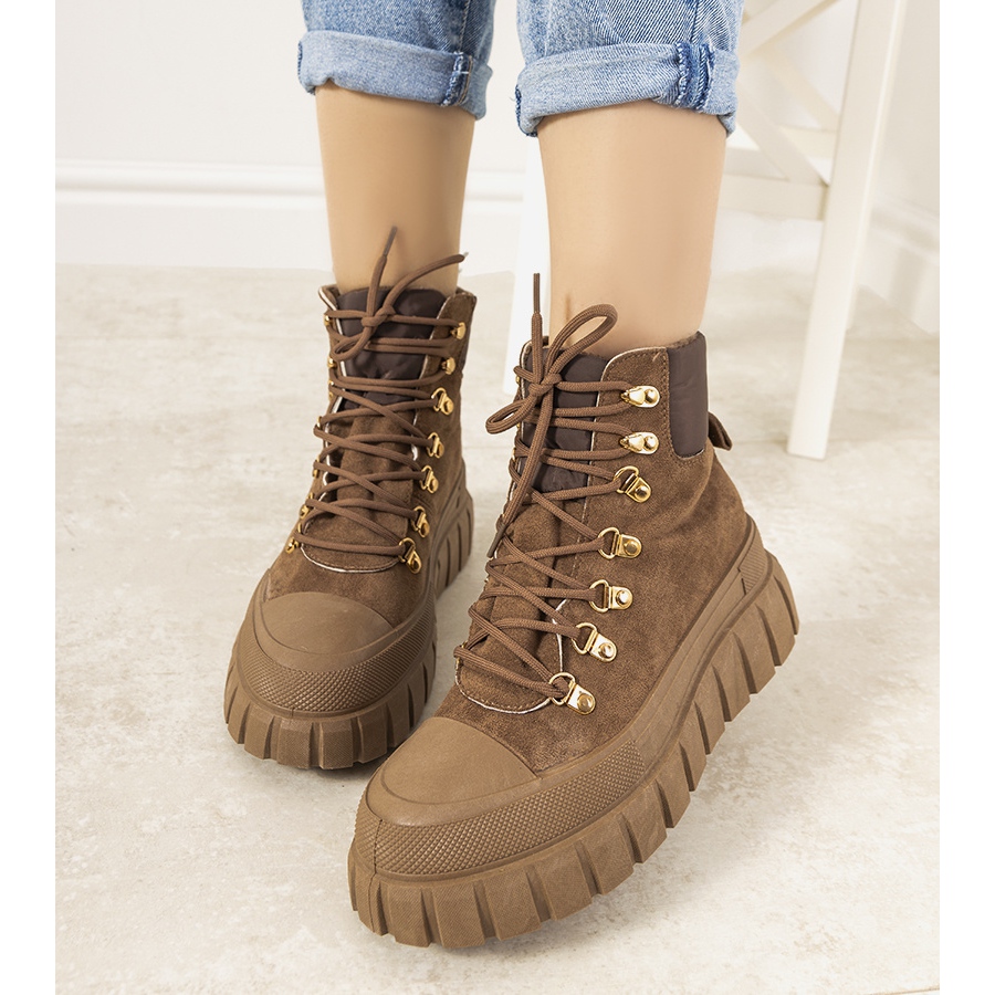 Inna marka Hnědé zateplené dámské šněrovací kozačky od Calabresi hnědý