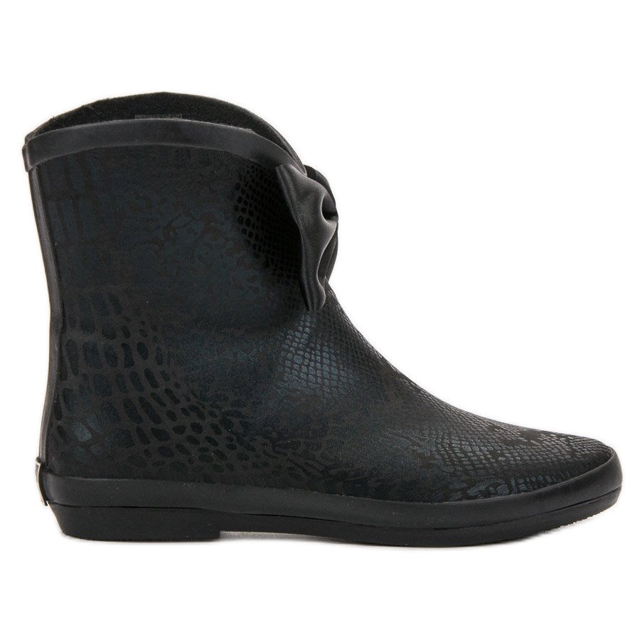Stylová mašlička a zvířecí vzor dodávají obuvi jedinečný charakter, díky čemuž se tyto holínky perfektně hodí pro ležérní styl. Nízký podpatek 2,5 cm a pružná gumová podrážka s nášlapem zaručují pohodlí při nošení a dobrou přilnavost k zemi.
