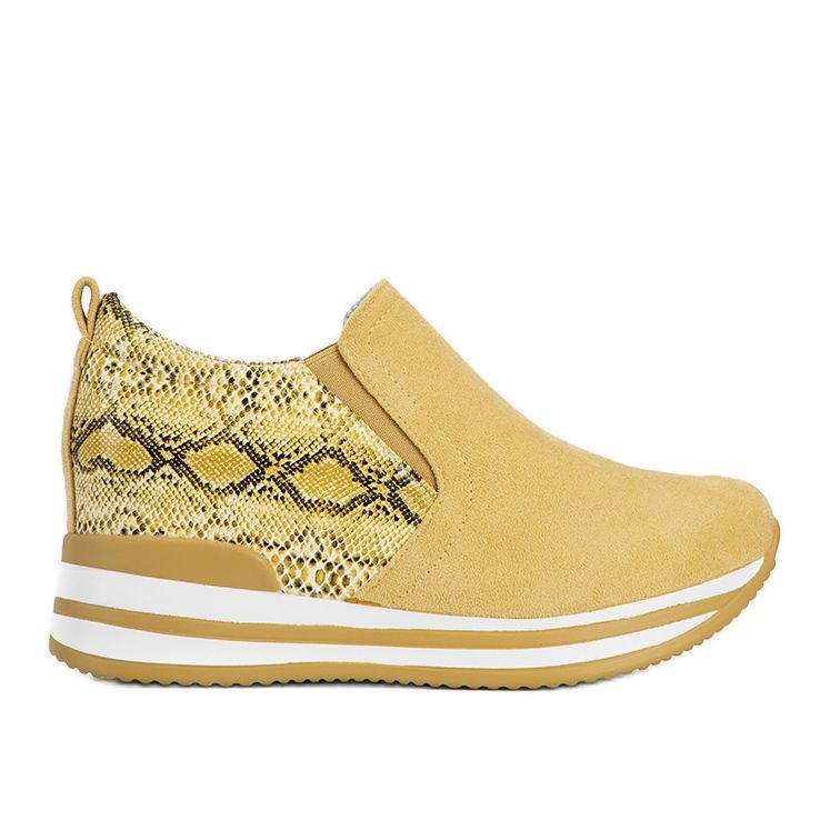 Tenisky jsou vyrobeny ze semišové ekologické kůže ve šťavnatém žlutém odstínu, který je hitem nadcházející sezóny. Dodatečný akcent v podobě vsadky s motivem hadí kůže dělá tento model výjimečným od ostatních.