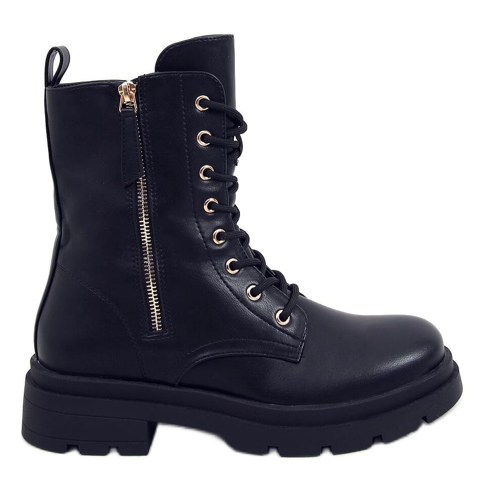 Vojenské boty Howk Black jsou perfektní volbou pro ženy, které chtějí spojit styl s pohodlím. Tyto černé dělnické boty s vysokou podrážkou se vyznačují efektním zlatým zipem a poutky na pásek, které jim dodávají jedinečný charakter. Díky tradičnímu šněrování se boty perfektně přizpůsobí noze a pohodlný zip na boku svršku usnadňuje obouvání a zouvání.