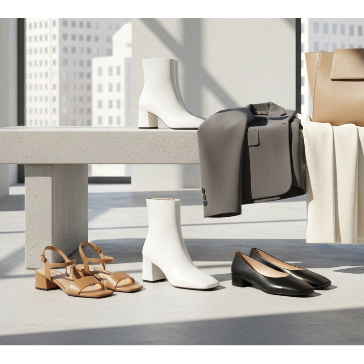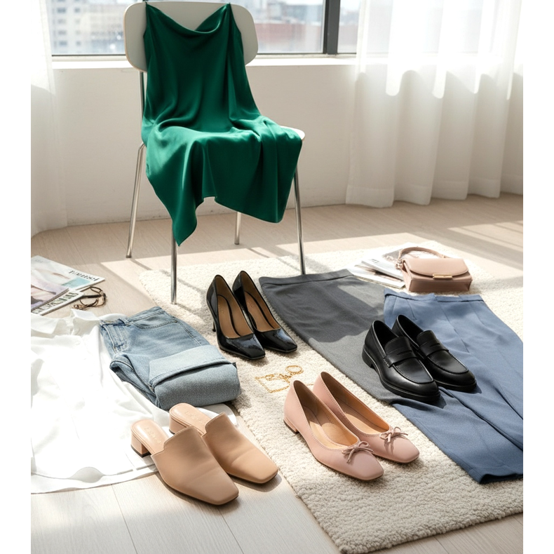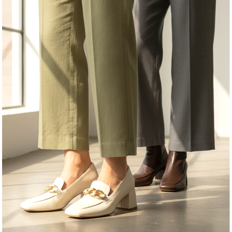 Do kanceláře - balerínky nebo mokasíny se čtvercovou špičkou s tužkovou sukní nebo cigaretové kalhoty. Tato sada je kvintesencí profesionálního power logu roku 2026. Vyberte si barvu bot podobnou spodní části oblečení, abyste opticky prodloužili nohy.