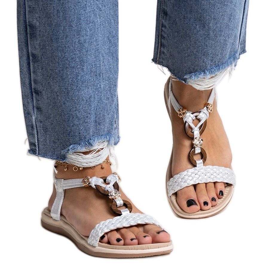 Sandály ve stříbře se vyznačují klasickým řezem a jejich pletená konstrukce jim dává jedinečný charakter Boho. S plochým patou s výškou 2 cm zaručují pohodlí nošení po celý den, což z nich činí skvělou volbou jak pro procházku po městě, tak pro letní akce.