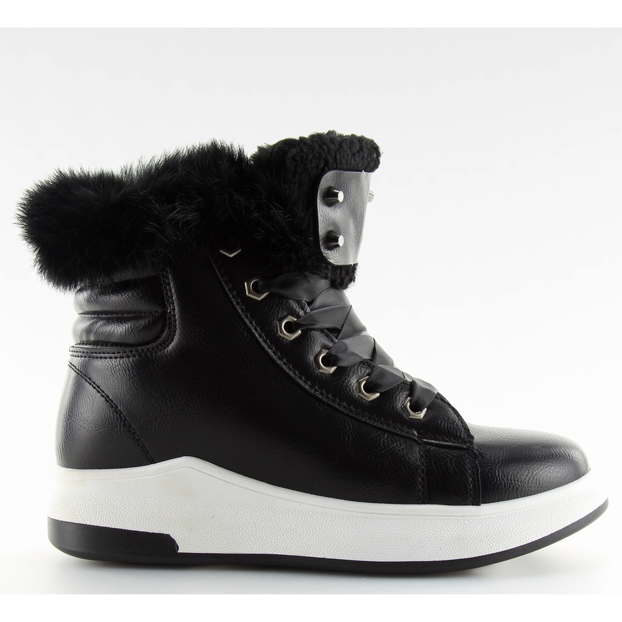 Elegantní, černé sportovní boty KB-039 jsou dokonalou kombinací městského stylu a pohodlí pro chladné dny. Šněrované saténovou stuhou, zdobené kožešinou kolem kotníku a módní vsadkou s cvočky na jazyku upoutají pozornost a dodají celku originální charakter. Boty jsou plně zateplené hustou kožešinou, takže jsou ideální pro lidi, kteří oceňují teplo a pohodlí.