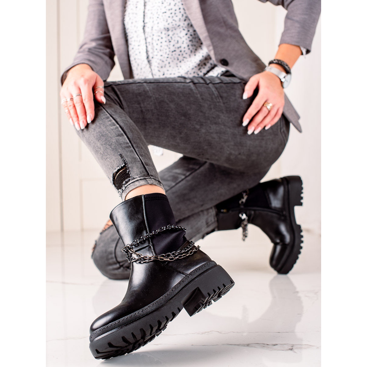 Objevte stylovou a funkční obuv pro nadcházející chladné dny – zateplené dělnické boty Gogo s řetízky v černé barvě. Tyto dámské kotníkové boty perfektně zapadnou do ležérního rockového stylu, skvěle se hodí jak na každodenní procházky, tak na neformální schůzky.