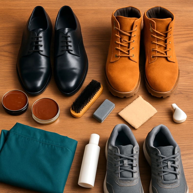 Koupím: krém na boty, impregnační prostředek, kartáče (na hladkou kůži a semiš), dřevěné stromečky na boty, deodorant na boty, noviny na sušení.