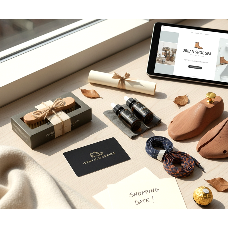 Další příslušenství jako bonus. Boty můžete doplnit ladícími ponožkami, pečujícími přípravky nebo elegantními tkaničkami. Tato sada ukazuje extra myšlenku a péči.