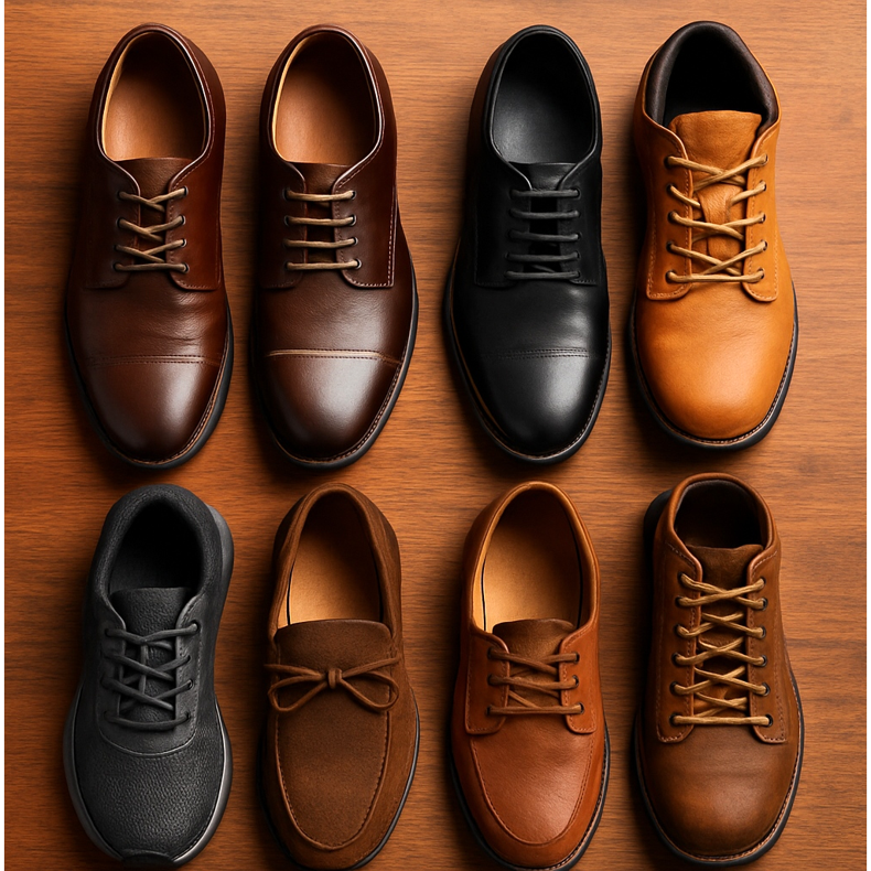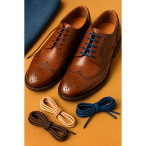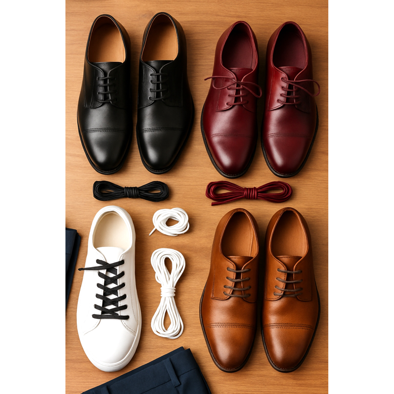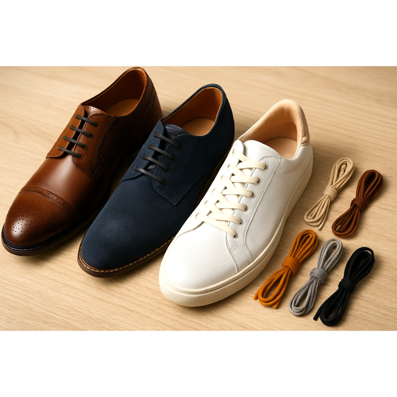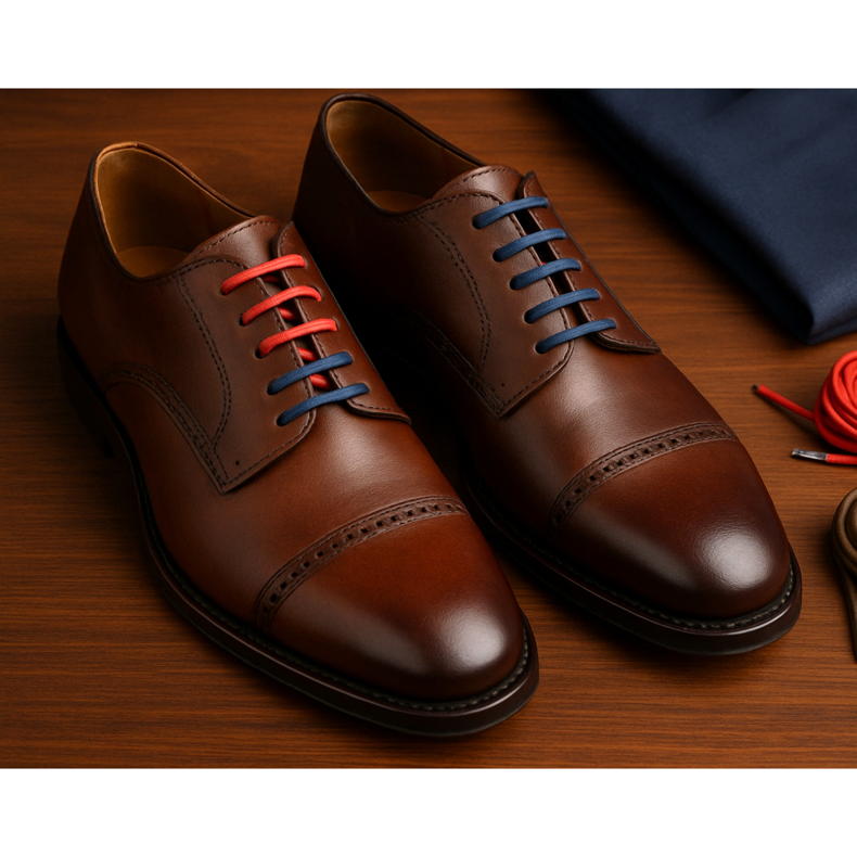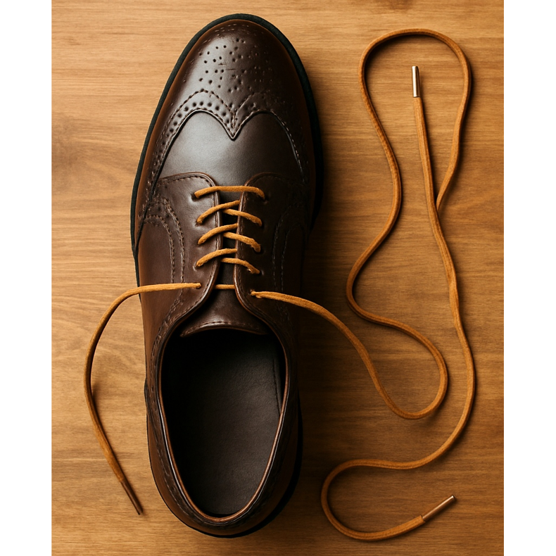 - Hnědé boty → hnědé tkaničky (ladí odstín - světle hnědá pro světlé boty, tmavě hnědá pro tmavé boty)