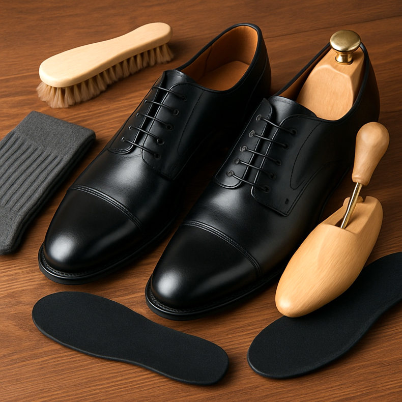 Boty musí být v perfektním stavu - vyleštěné do lesku a bez jakýchkoliv stop používání. Zvažte návštěvu obuvníka na profesionální čištění.