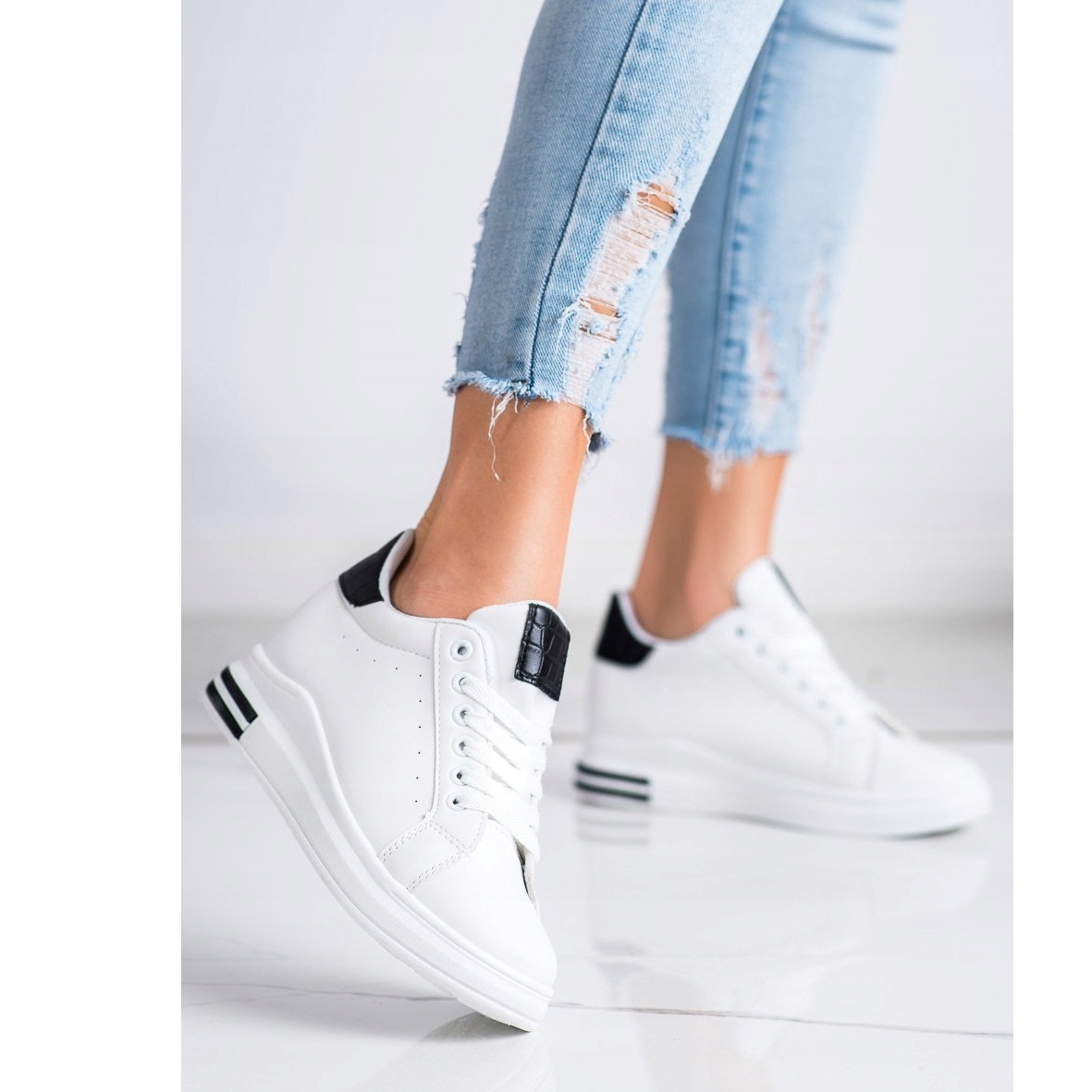 Díky skrytému 5centimetrovému klínku získáte pár centimetrů na výšce, což zvýrazní vaši postavu, aniž by se vzdalo pohodlí. Bílé tenisky s černými vsadkami dokonale zapadají do současných trendů a umožňují je snadno kombinovat s různými oděvy - od džínů po vzdušné šaty.