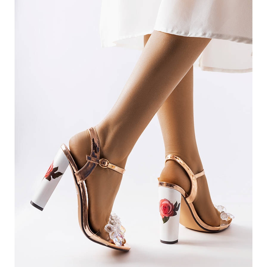 Zlaté sandály s béžovou podrážkou jsou vrcholem stylu a elegance. Plast použitý k vytvoření podrážky je odolný a zaručuje stabilitu při chůzi. Stélka z ekologické kůže zajišťuje pohodlí při používání a vnější materiál, rovněž z ekologické kůže, dodává obuvi nadčasový půvab.