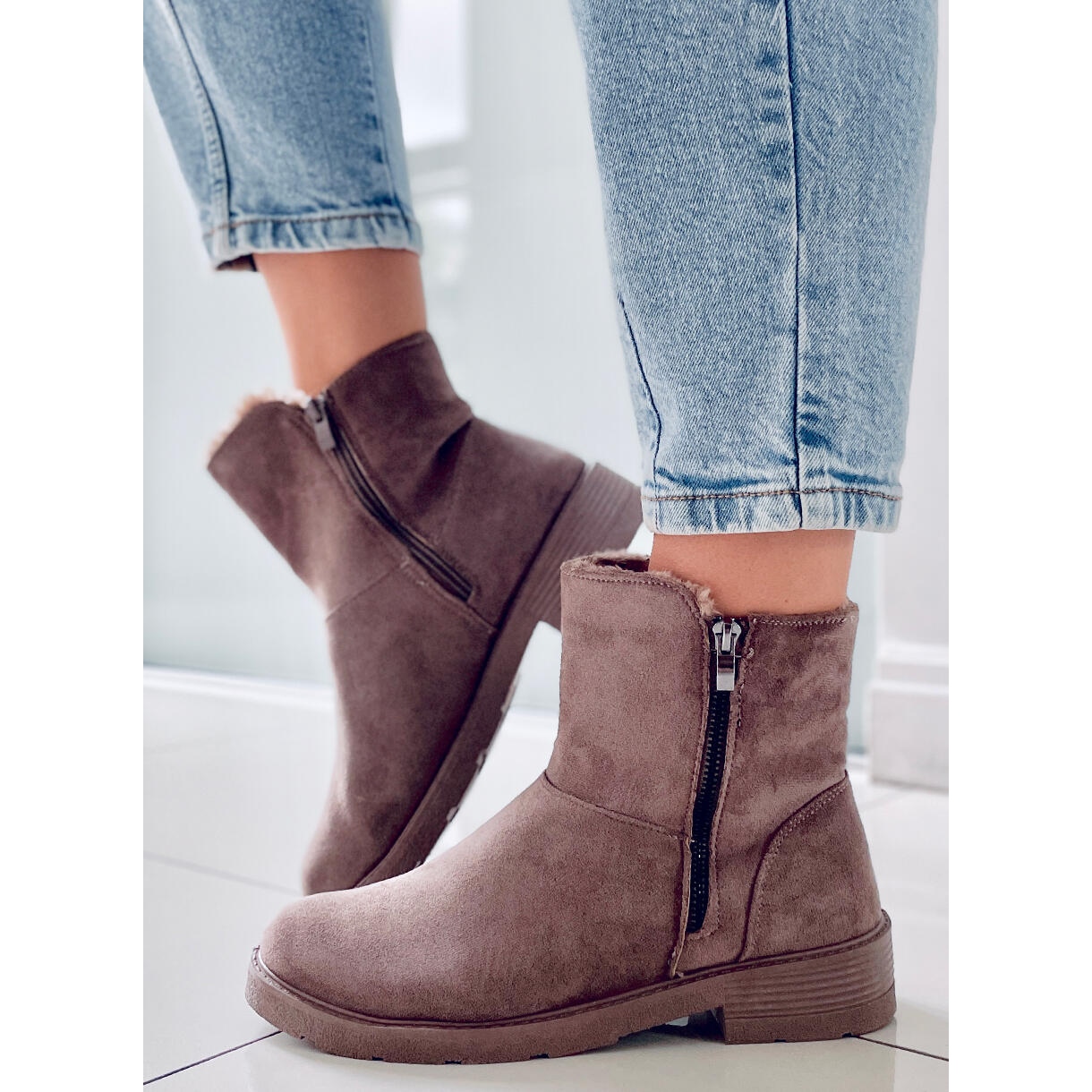 Ozdobný zip na boku svršku nejen upoutá pozornost, ale také usnadňuje nazouvání bot, což z nich dělá ještě praktičtější řešení. Plochý 3 cm vysoký podpatek zajistí pohodlí při nošení a vnitřek lemovaný jemným kožíškem zaručí příjemný zážitek v chladnějších dnech.