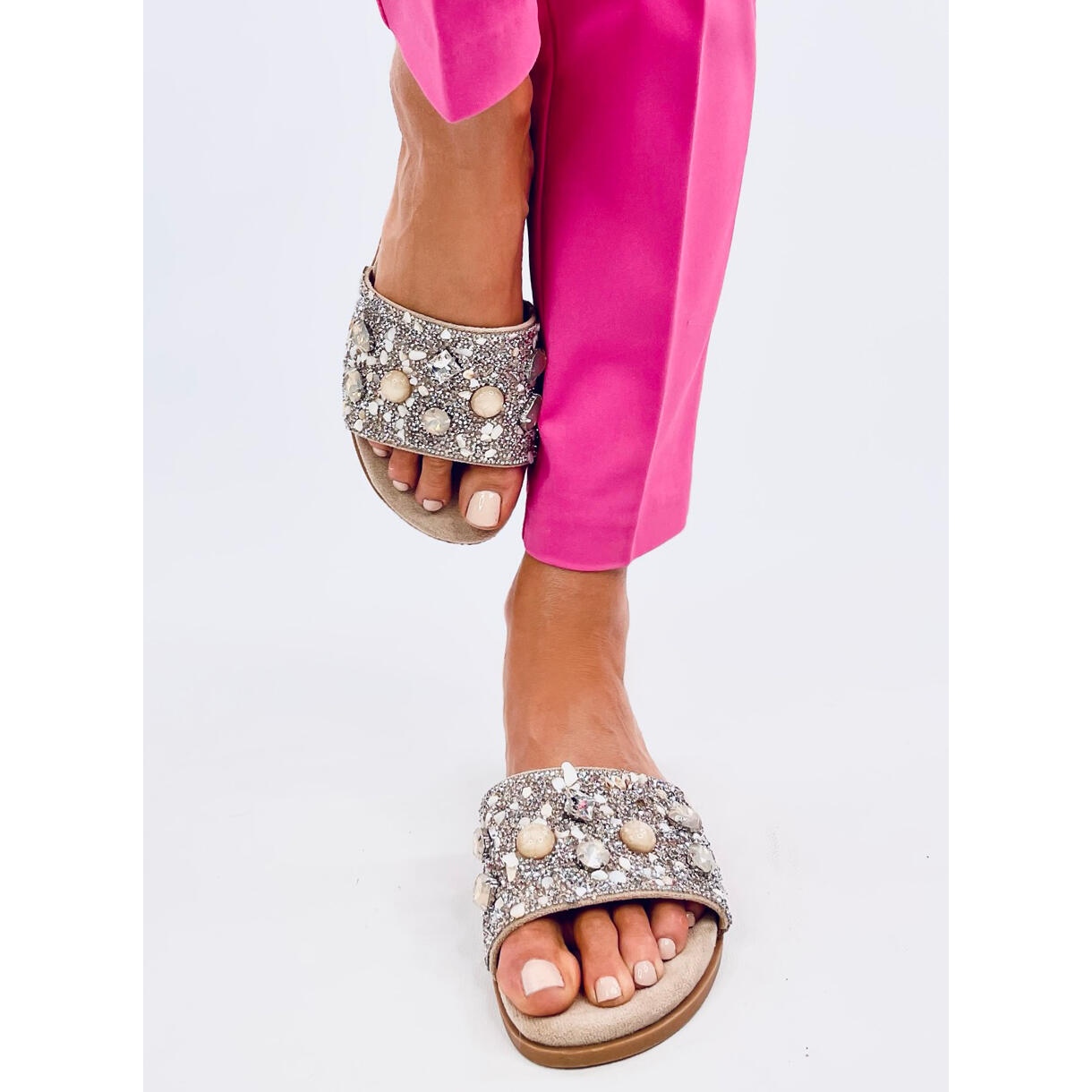 Žabky s kamínky jsou určeny pro ženy, které chtějí spojit ležérní styl s elegantním doplňkem a dodají tak svému každodennímu outfitu na originalitě. Jsou to boty, které se skvěle hodí do městské módy, ale díky své univerzální barvě - béžové se budou hodit prakticky ke všemu.