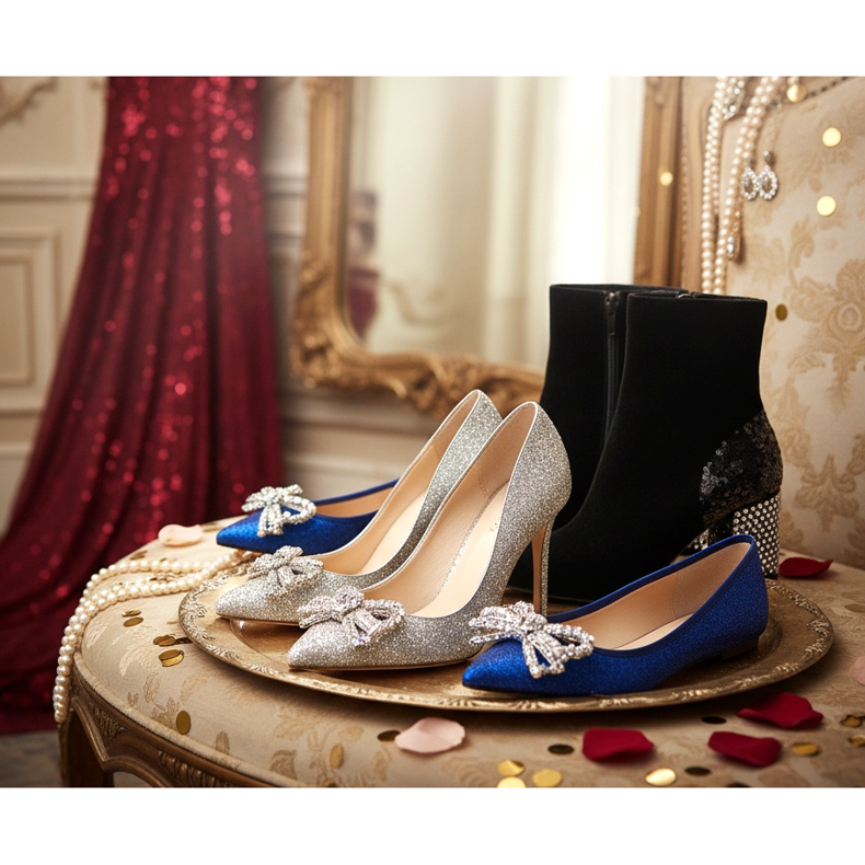 Silvestr je čas blesku a půvabu. Můžete si dovolit odvážnější volby – třpytivé vysoké podpatky, boty s lesklými aplikacemi nebo metalické sandály. Jedná se o jednu noc v roce, kdy je svícení nejen povoleno, ale i doporučeno. Pokud plánujete hrát intenzivně až do rána, vezměte si náhradní, pohodlnější boty.