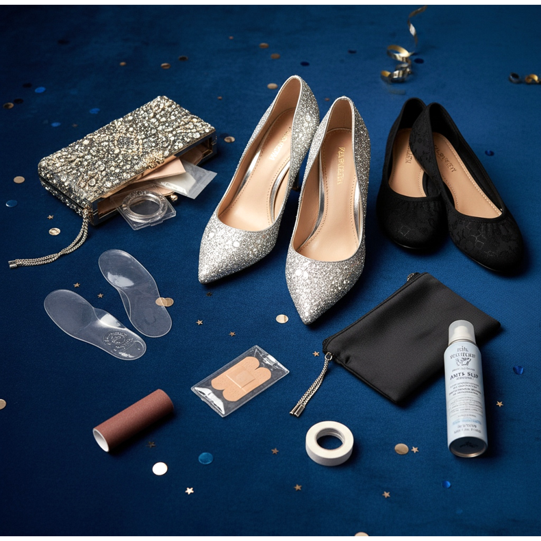 Vezměte si s sebou náhradní boty! Skládací balerínky nebo ploché sandály v kabelce mohou zachránit večer. Pokud se po pár hodinách tance cítíte unavení, můžete se nenápadně přezout a pokračovat v zábavě v pohodlí.