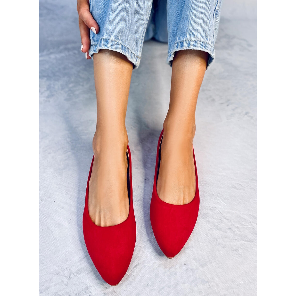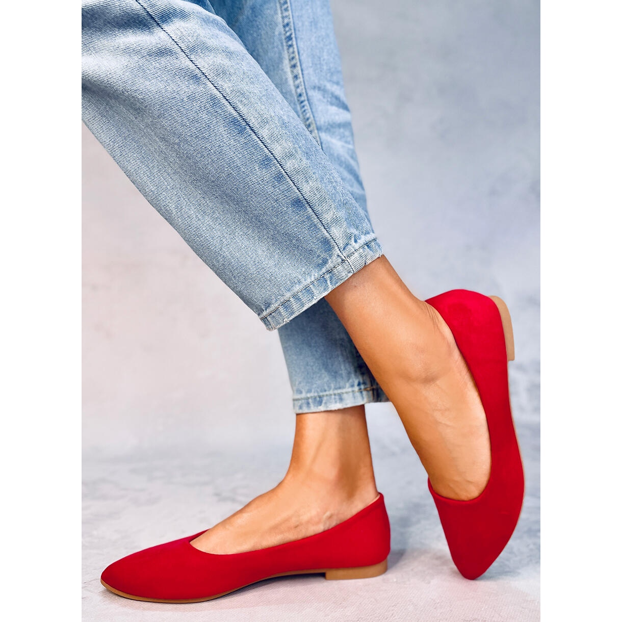 Výjimečný komfort používání zajišťuje kožená vnitřní vložka, která zaručuje pohodlí na každém kroku a plochý podpatek zajišťuje stabilitu a umožňuje volný pohyb po celý den. Balerínky jsou vyrobeny z ekologického semiše, díky čemuž jsou estetické a šetrné k životnímu prostředí, a jejich krásná červená barva je poutavá a dodává charakter každému stylingu.