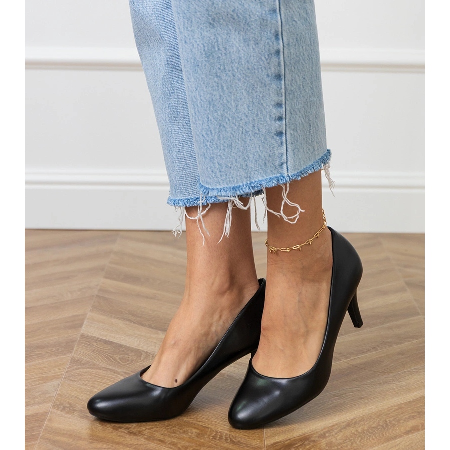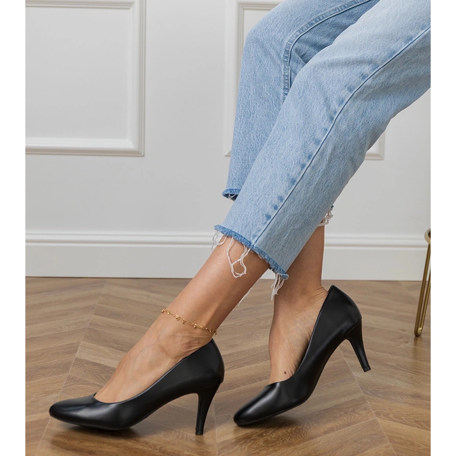 Černá barva čerpadel z nich dělá univerzální prvek oblečení, ideální pro různé příležitosti - od každodenních východů po formálnější události. Kulatý nos a jemný špendlík s výškou 7,5 cm přidejte třídu a prodlužujte postavu a zároveň zajišťují pohodlí nošení.