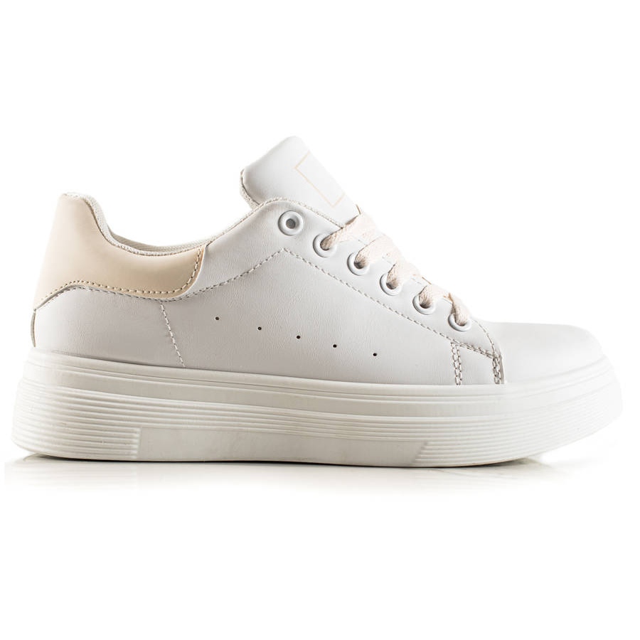 Tenisky Ideal Shoes jsou modelem se 4 cm vysokou platformou, která přidává trochu na výšce při zachování komfortu používání. Díky jejich univerzální bílé barvě se hodí k mnoha stylům - sportovním i každodenním.