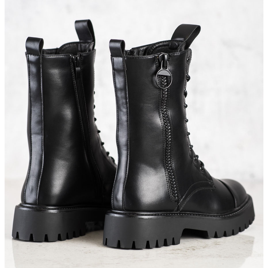 Díky klasické černé barvě lze tyto kozačky snadno kombinovat s různými styly - od džínů po šaty a dodají vašemu vzhledu nádech rockového stylu. Nečekejte, vyberte si bovver boty SHELOVET a užijte si módu a pohodlí po celou sezónu podzim/zima!